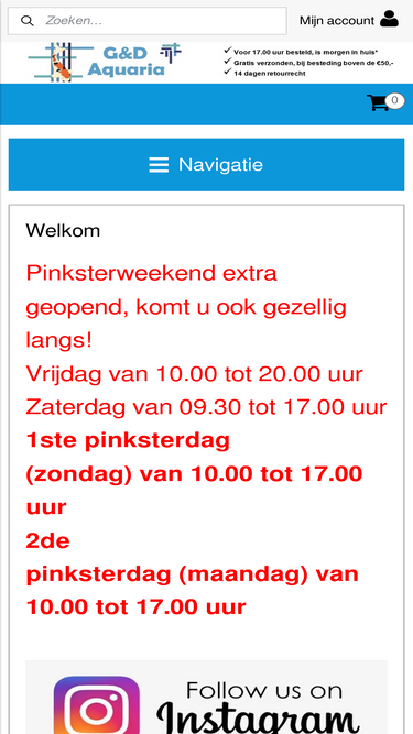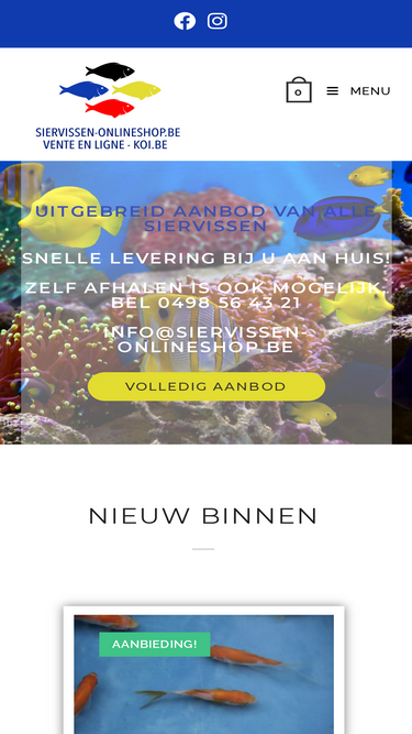 77%Wij bieden alles op het gebied van aquaria, hengelsport, hond, kat en terraria. Met meer dan 200 soorten tropische aquariumvissen op voorraad en 700 soorten online, zijn wij één van de grootste aanbieders op het gebied van aquariumvissen en planten. Naast onze levende have bieden wij een ruim assortiment producten van alle bekende merken zoals Sera, Superfish, Hs Aqua, Shimano, Spro enz. enz.