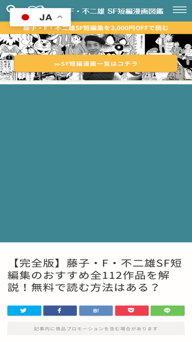 85%この記事では、藤子・F・不二雄先生のSF短編集をお得に読む方法を解説しています。日本国内にある電子書籍52サイトを徹底比較し発見した、『藤子・F・不二雄SF短編集PERFECT版』をお得に読むことができる3サイトを詳しくご紹介していきます。