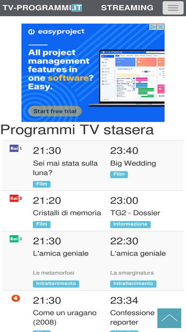 78%La Tv italiana non è mai stata così semplice da vedere online. Sono disponibili tutti i canali più importanti per il live streaming.