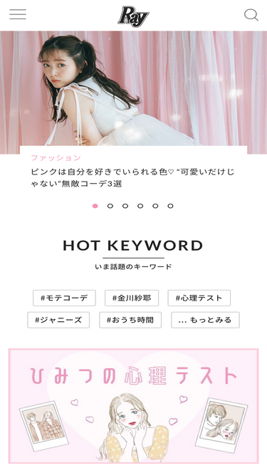 85%ファッション誌「Ray(レイ)」がお送りする、ファッション・ヘア&メイク、恋愛、流行。365日可愛くなりたい女の子のための情報をリアルタイムでお届けします!