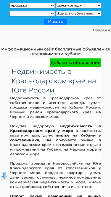 85%недвижимость краснодарского края, доска объявлений о покупке, продаже и аренде квртир, домов и земельных участков