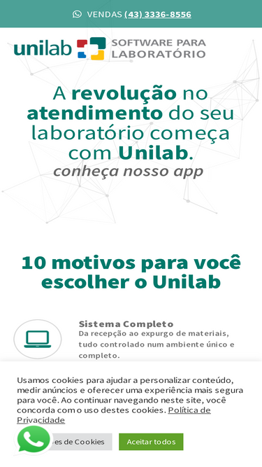 99%O mais completo software para laboratório. Sistema de gestão completo: automação, atendimento, marketing, estoque, finanças, soroteca, resultado online e o melhor custo x benefício.