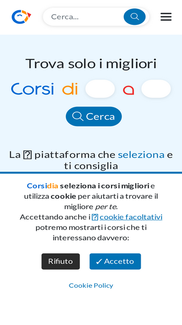89%corsidia seleziona solo le scuole, gli enti di formazione e gli insegnanti migliori per aiutarti a confrontare le offerte formative, i prezzi e trovare il corso ideale per te. fra i consigliati, scegli i corsi di tuo interesse e contatta direttamente gli organizzatori per maggiori informazioni. su corsidia.com puoi trovare tutti i tipi di corsi, per privati e aziende, mentre corsidia.org è riservata ai corsi di formazione finanziati dalle politiche attive per il lavoro.