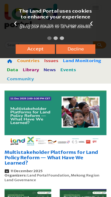 85%The Land Portal is a global gateway for land related information that is building a specialized community of land experts from civil society, government, intergovernmental agencies, and academia.