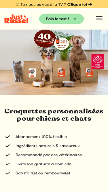 93%Découvrez notre gamme développée sur mesures pour le bien être de votre animal. Nos croquettes pour chiens et chats sont élaborés dans notre établissement du sud ouest en utilisant que des antioxydants et conservateurs d'origine naturelle