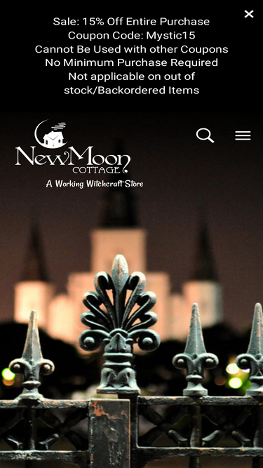 85%New Moon Cottage offers a wide variety of Witchcraft, Wiccan, and Metaphysical supplies to meet all of your spiritual and magickal needs. Whether you are a curious newcomer or an advanced Practitioner, you will find what you need at New Moon Cottage. We proudly serve the global metaphysical community with satisfied customers in the U.S., Canada, England, Scotland, Finland, France, Australia, Iceland, Japan, and Germany. Blessings on Your Journey!