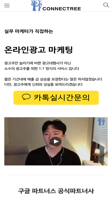100%커넥트리는 1인 대표가 운영하는 광고 실행사로, 검색 광고, 배너 광고, 영상 광고, 데이터 분석 등 다양한 온라인 광고 서비스를 제공합니다. 2019년 구글 공식 파트너스 자격을 취득하여 구글 광고 운영에 대한 전문성을 인정받았습니다.