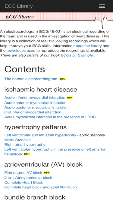 74%The 12 lead ECG library - ecglibrary.com. A collection of electrocardiograms. Learn electrocardiography by seeing examples of the various abnormalities.