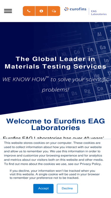 100%EAG Laboratories has over 40 years experience in materials testing and offers a consultative multi-disciplinary approach to solving scientific problems