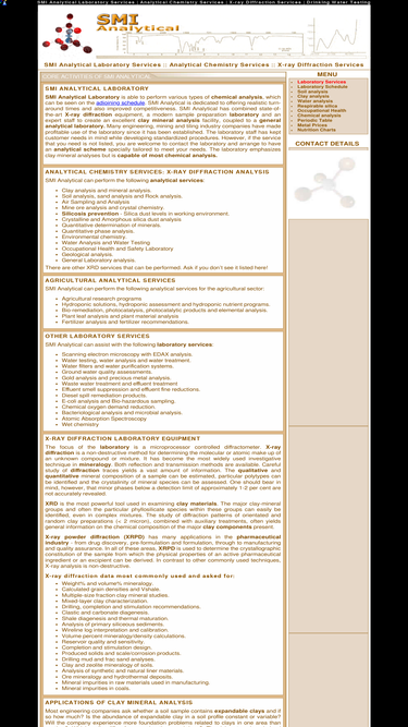 63%SMI Analytical Laboratory Services / Chemical Laboratory Services specializes in quantitative X-Ray diffraction (XRD) determination of clays, sand, soils, mine ore, minerals, precious metals, gold, rocks and water in Southern Africa.
