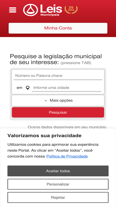 100%aqui você encontra as leis dos municípios brasileiros. legislação consolidada e compilada. são mais de 9.5 milhões de leis disponibilizadas.