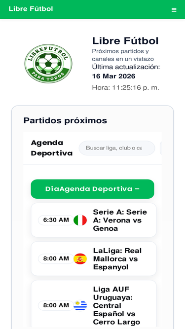 100%Fútbol Libre ofrece partidos en vivo en calidad HD, agenda diaria actualizada y acceso rápido a los mejores canales deportivos online.