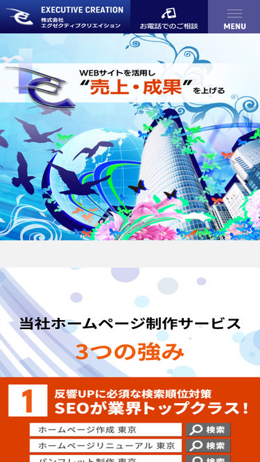 東京台東区のホームページ制作、ホームページリニューアル専門エグゼクティブクリエイションでは、ホームページ制作から運営・検索対策、ポータルサイト、スマホサイト制作まで対応。web制作ビジネスプランは9,800円~です!
