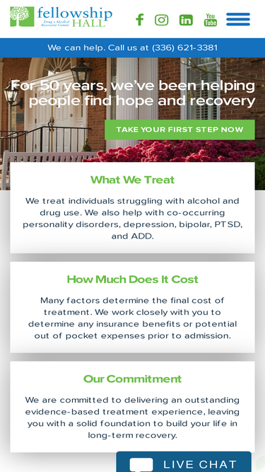 81%Fellowship Hall is the premier alcohol and drug treatment center based in Greensboro, NC. Get in touch with us today for more information.