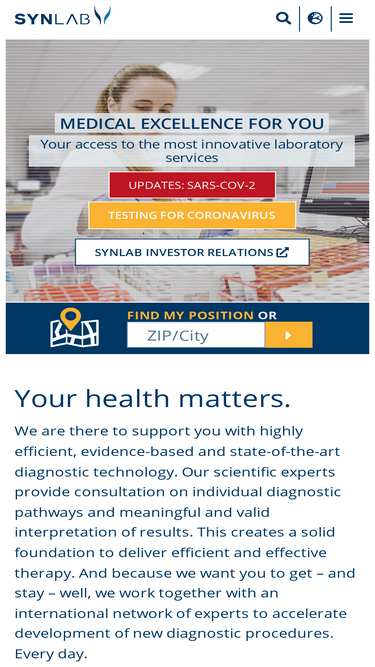 SYNLAB is Europe's leading provider of laboratory diagnostic services. Our mission is to provide advanced services in every diagnostic category for the benefit of our customers.