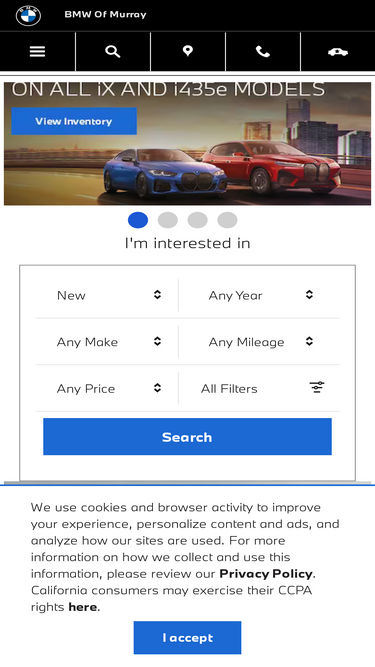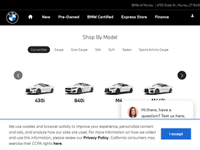 100%visit us at bmw of murray in murray for your new or pre-owned bmw car. we are a premier bmw dealer providing a comprehensive inventory, service, and parts always at a great price. we're proud to serve salt lake city, sandy and ogden.