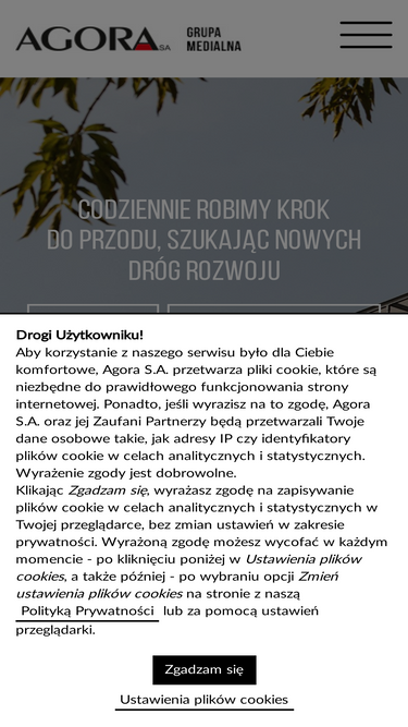 100%Agora SA - jedna z największych spółek medialnych w Polsce. Jej działalność obejmuje wydawanie prasy, reklamę zewnętrzną, działalność radiową, internetową i telewizyjną.