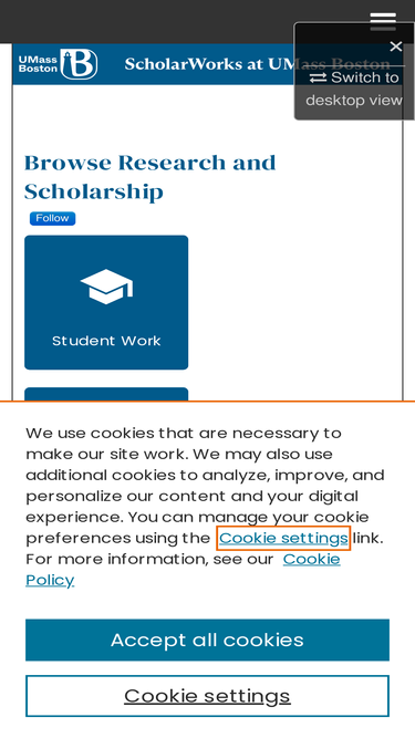 87%the repository is a service of the university of massachusetts boston libraries. research and scholarly output included here has been selected and deposited by or with the approval of the individual university departments and centers on campus.