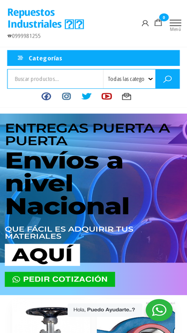 73%Entregas puerta a puerta Envíos a nivel Nacional Que fácil es adquirir tus materiales aquí Pedir Cotización Nuevos Recomendados Te ha gustado nuestra Tienda..? Cañuela con foil Accesorios Ranurados Acesorios Sanitarios Válvulas check Juegos de NIvel Espárragos Bridas Válvulas Solenoides Tuberia Conectores / Racores Empaques…