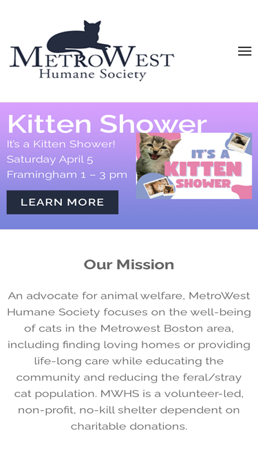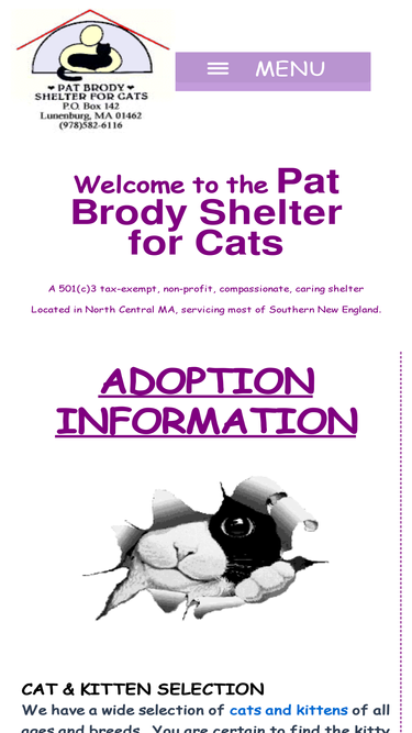 75%The Pat Brody Shelter for Cats is a non-profit, no-kill shelter.We, through our volunteers, rescue stray and abandoned cats and kittens and care for them until they are placed in good homes.