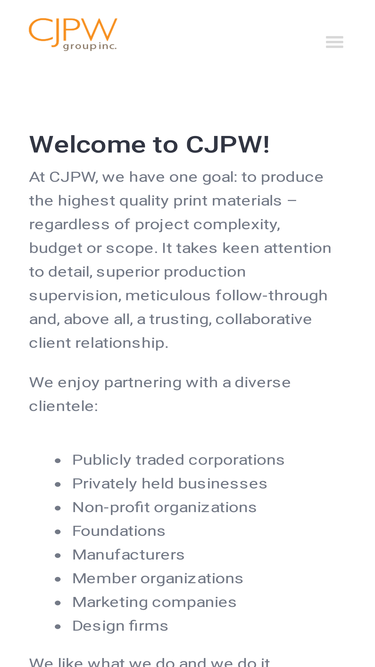 100%Contact Us CJPW GROUP INC. 1500 15th Avenue Drive East – Unit 105 Palmetto, FL 34221 Toll-Free: 800 955 CJPW (2579) Tel: NY: 212 243 0400 & Local: 941 417 7318 Fax: 941 866 6863 Email us info@cjpw.com