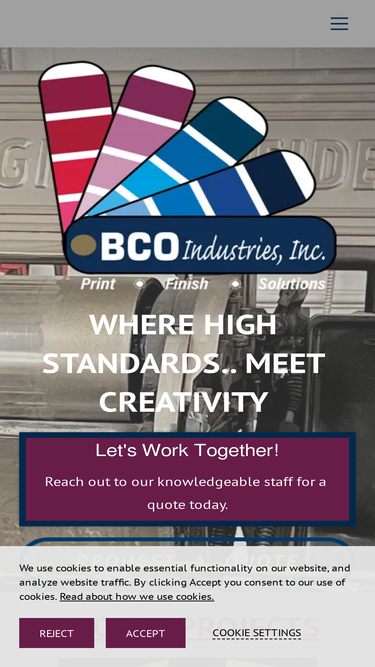 100%BCO Industries, Locally owned and operated Print shop for over 40 years- Services offered Thermography, Rubber Stamps, Digital and Offset Printing, Print Finishing