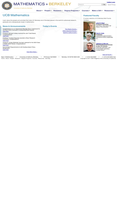 100%The Department of Mathematics offers the following degrees in mathematics: Doctor of Philosophy, Master of Science, Master of Arts, Master of Science in Teaching and Master of Arts in Teaching. There are opportunities for concentrated study in algebra, number theory, analysis, algebraic and differential geometry, topology, logic and set theory, differential equations, dynamical systems, probability […]