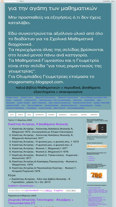 Ένα ιστολόγιο αποκλειστικά για Μαθηματικά, από τον Μάκη Χατζόπουλο
