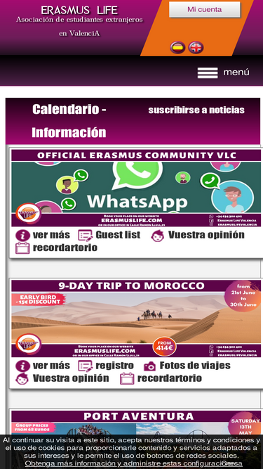 80%Esta pagina presenta las actividades de la asociacion por los estudientes Erasmus de las universidades de Valencia