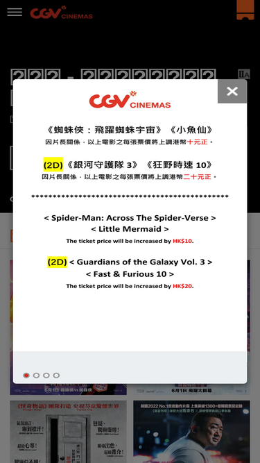 90%cgv cinemas 為韓國最大的連鎖電影院,於2018 年9月正式登陸香港d2 place two 。戲院設有4 個主題影廳,提供共472 個座位,當中包括全港首個以韓星為主題的電影館孔劉館, 首個配備270度的投影技術的screenx, 專為情侶而設的 sweetbox 及上班族另類開會選擇 hsbc films ,為觀眾提供一個嶄新的觀影體驗。