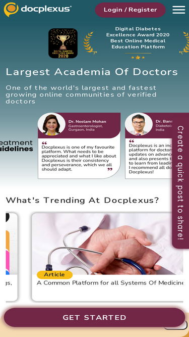 Docplexus is 380,000+ Global Community of Doctors which enables peer-to-peer interaction & knowledge-sharing for better clinical decisions.