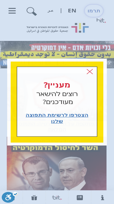 73%אנחנו באגודה לזכויות האזרח מחויבות ומחויבים להגנה על זכויות האדם ולקידומן, בכל מקום שבו הפגיעה בזכויות נעשית על ידי רשויות ישראליות. אנו עוסקים בכל קשת זכויות האדם: מחופש הביטוי ועד הזכות לדיור, מהגנה על זכויות האדם בשטחים הכבושים ועד להגנה על הפרטיות שלנו באינטרנט.
