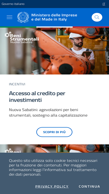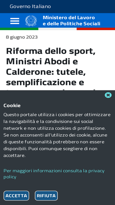 85%La Presidenza del Consiglio dei Ministri si impegna a rendere il proprio sito web accessibile, conformemente al D.lgs 10 agosto 2018, n. 106 che ha recepito la direttiva UE 2016/2102 del Parlamento europeo e del Consiglio. Dichiarazione di accessibilità Feedback e recapiti Per inviare segnalazioni su casi di mancata conformità ai requisiti di accessibilità scrivere alla casella di posta elettronica accessibile@governo.it.