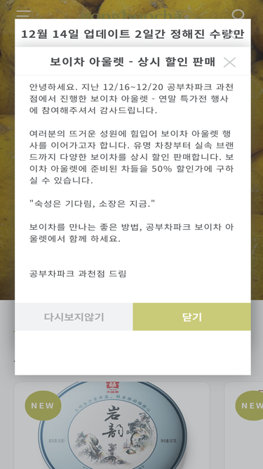 100%80년 전통의 대익보이차 공식몰 - 중국 국가문화유산인 비물질문화유산 으로 제조된 세계 최고 보이차의 맛과 문화를 느끼고 즐겨 보시기 바랍니다.