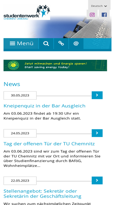 61%The Studentenwerk Chemnitz-Zwickau is a modern, inter-university service provider and provides social, economic, health and cultural support for over 15,000 students. It is a partner of the students of Chemnitz University of Technology and the West Saxon University of Applied Sciences Zwickau (FH). While it is the task of the universities to provide intellectual support, we help the students to master their everyday life.