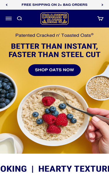 100%Better than instant, faster than steel cut. Coach's Oats patented Cracked n' Toasted Oats deliver hearty steel cut texture in less than 5 minutes.