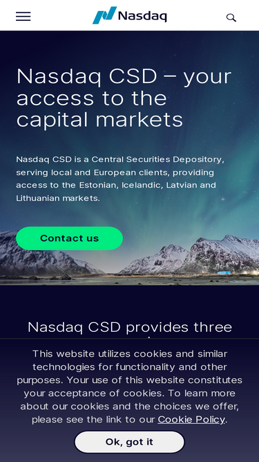 71%Nasdaq CSD is a Central Securities Depository, serving local and European clients, providing access to the Estonian, Icelandic, Latvian and Lithuanian markets.