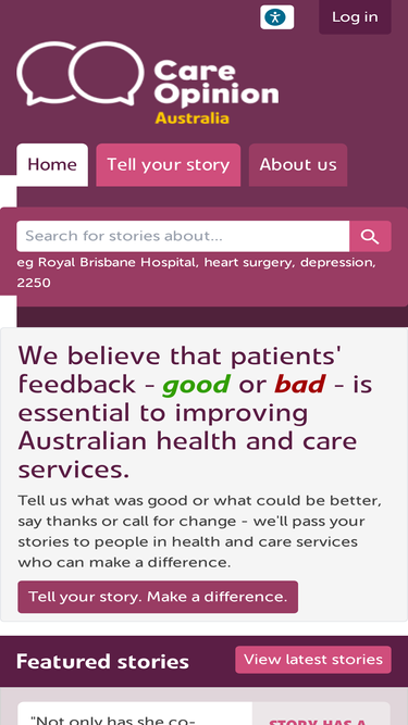83%Australia's independent non-profit feedback platform for health and social care. Share your story - help make our services better.