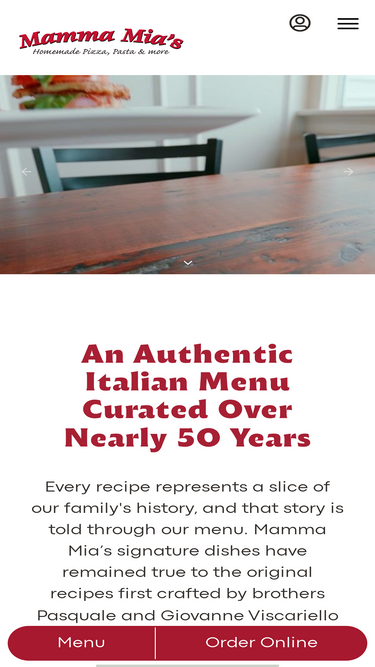 Mamma Mia's makes handmade pizza, pasta, and more! Family owned and operated on the South Shore for over 50 years.
