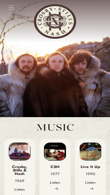 93%Crosby, Stills & Nash, often abbreviated as CSN, is a legendary American folk-rock supergroup formed in 1968. The trio comprises David Crosby, Stephen Stills, and Graham Nash, each bringing their distinctive songwriting and vocal harmonies to the group.