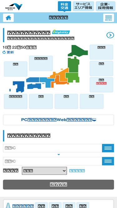西日本高速道路株式会社の道路交通情報サイトです。高速道路の料金検索、渋滞・通行止め情報、工事の予定など高速道路のご利用に必要な道路交通情報を掲載しています。