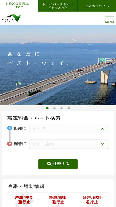 69%It is the official site of NEXCO EAST. NEXCO EAST (East Nippon Expressway Co., Ltd.) manages Expressway from northern Kanto, Nagano, Niigata to Hokkaido. By maximizing the effects of Expressway, we support the development of local communities and the improvement of people's lives, and contribute to the revitalization of the Japanese economy as a whole.