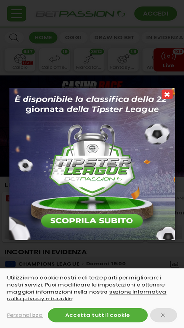 94%Scommesse sportive: Promozioni esclusive e le migliori quote li trovarai solo su Betpassion.it. Cosa aspetti registrati e ottiemi un Bonus di Benvenuto
