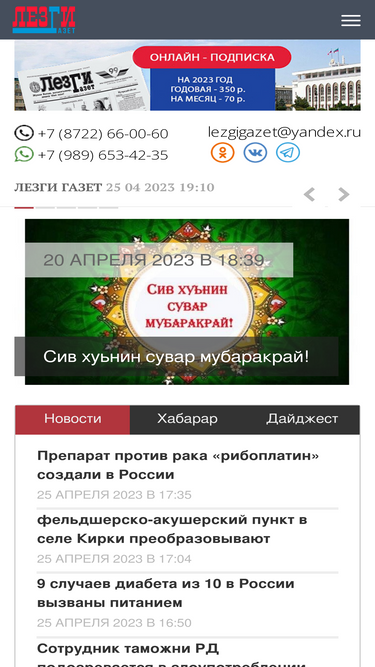 93%«ДП»: ПОДПИСКА НА 2024 г. Стоимость подписки на год 1 экземпляра газеты: в почтовых отделениях, до адресата – 3937,68 руб. «Дагпечать», получение в киосках – 1500,00 руб. Стоимость подписки на полгода 1 экземпляра газеты: в почтовых отделениях, до адресата – 1968,84 руб. «Дагпечать», получение в киосках – 750,00 руб. По всем вопросам звонить: 67-28-70 – Почта России, +7928-063-72-71 –Дагпечать