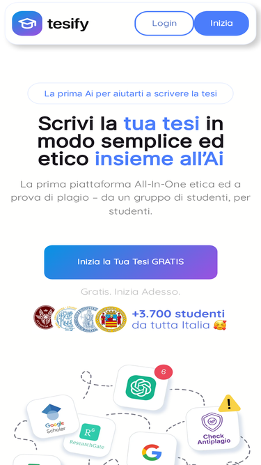 87%Tesify è l'App Ai che ti guida passo dopo passo. Dall'indice alla revisione finale, scrivi senza ansia e nel rispetto delle regole. Inizia oggi gratis.