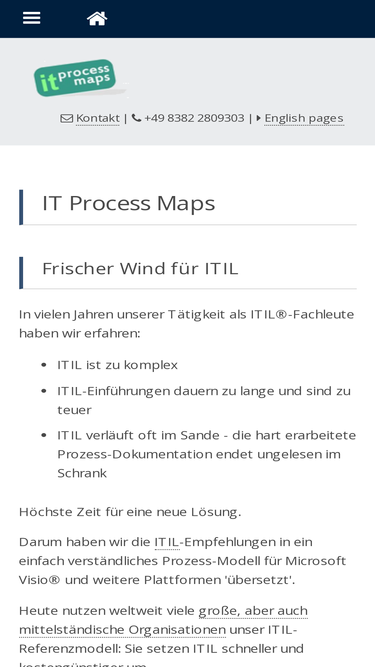 71%Professionelles ITIL®-Prozessmodell (Visio, ARIS, ...) als Referenz für ITIL®-Vorhaben. - Offiziell ITIL®-lizenziert. - IT Process Maps, Deutschland.