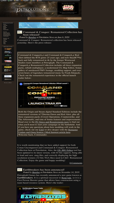 97%full news coverage and modding support for command & conquer games such as red alert 3, tiberium wars, generals, red alert 2, tiberian sun and expansions. we also provide help and tutorials for modders, public researchs and a c&c community in our forums and we produce tools for c&c modders.