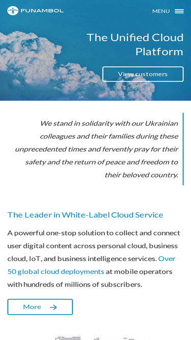 97%funambol is the leading provider of platforms that power many cloud services. these services include personal clouds, business clouds, family clouds, iot clouds and sim clouds. funambol enables mobile operators, system integrators and other service providers to rapidly go-to-market with diverse branded cloud services. funambol solutions have been deployed by leading companies in the mobile industry for more than two billion people.