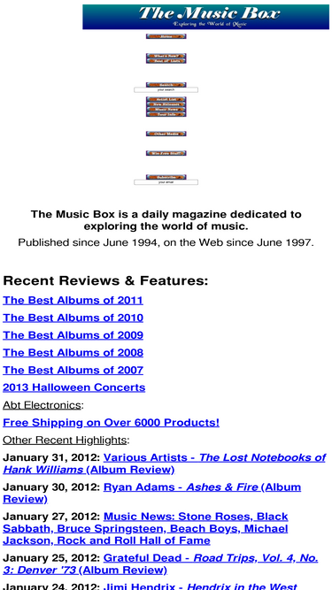 73%the music box is a daily music and entertainment magazine featuring reviews, music news, tour dates, interviews, feature articles, streaming audio and video, contest giveways, and more.