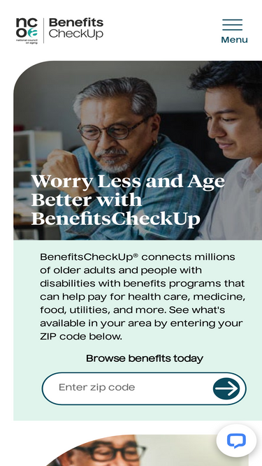 100%NCOA’s BenefitsCheckUp® connects millions of older adults and people with disabilities with benefits programs that can help them afford nutritious food, health care, and more. Get started today.